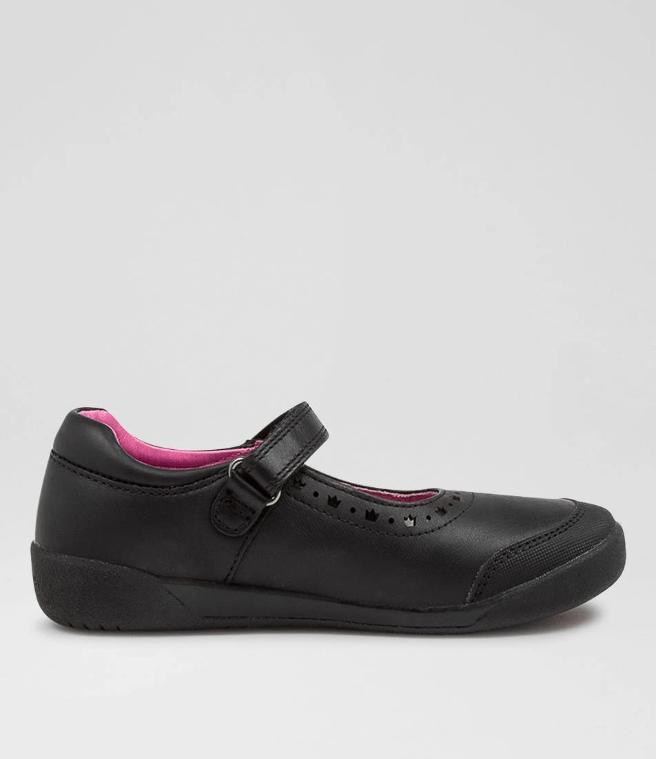 A leather Mary Jane with a fun pink lining, BETTY is a new Shopkins collaboration by Clarks for junior girls. Easy-fastening slip-on design for your independent little one.