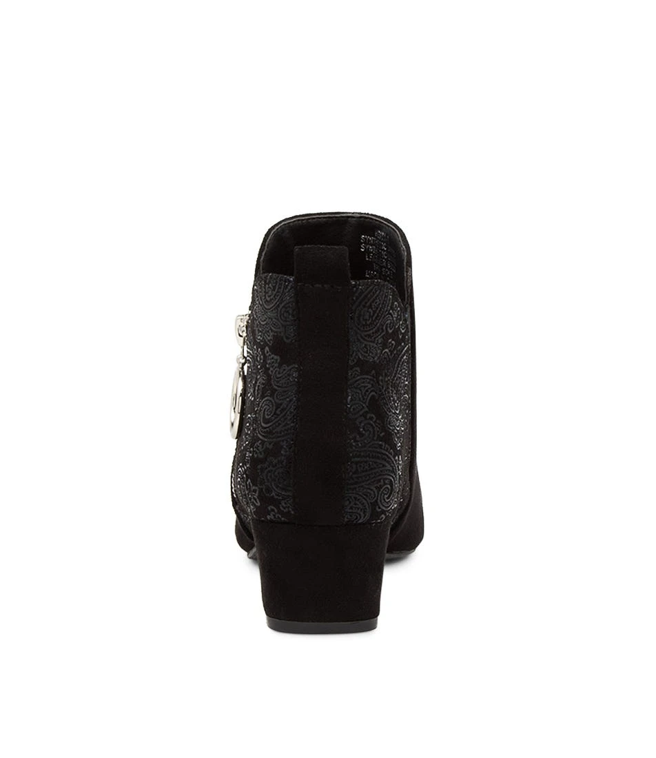 Microsuede ankle boots with a subtle pattern over the heel, HESTA by I Love Billy takes a classic look and elevates it on a block heel.