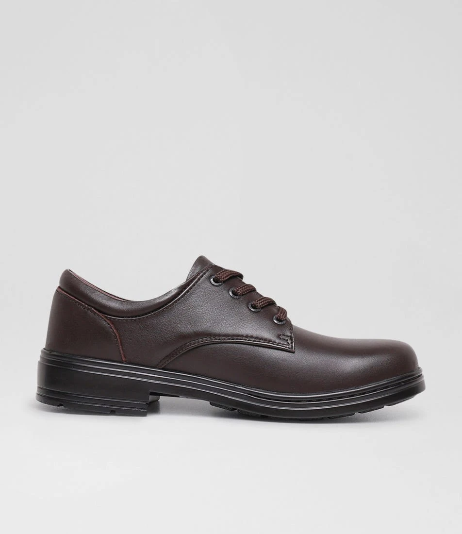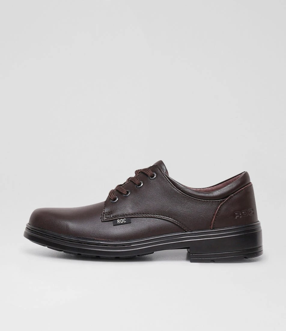 Durable lace-up school shoes, LARRIKIN SNR by ROC is made from breathable leather with a stitched insole and multi-fit construction to accommodate almost any foot shape. The lightweight, long-wearing PU outsole offers flexibility and comfort with each step, making it the perfect shoe for everyday wear and tear.