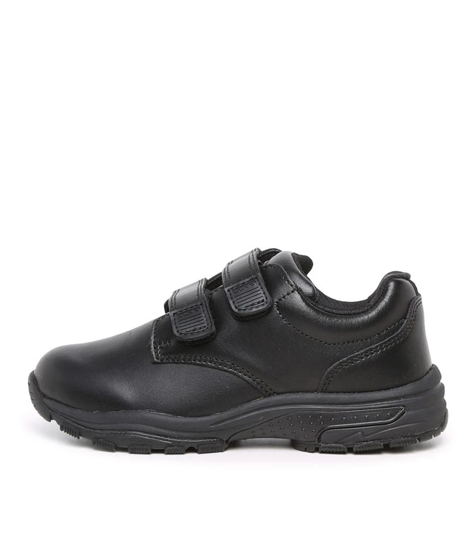 The SPHERE junior unisex school shoe is the school shoe of choice for kids and parents alike. Featuring quick and easy hook and loop straps a durable leather upper and Dri-Lex anti-bacterial linings for added moisture protection. This shoe has it all. Moulded poly insole. Phylon midsole and a rubber sole. Anti-bacterial germ free design. Multi fit shoe. 8 point podiatry check.