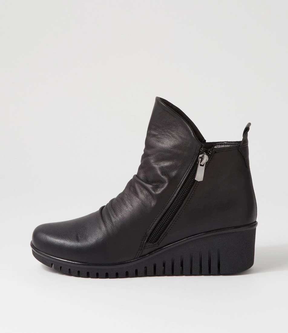 Taking casual looks to new heights, ORCHID is a stylish pair of leather ankle boots from Diana Ferrari. Twin zips and a flexible wedge sole makes these boots an elevated option that is easy to wear.