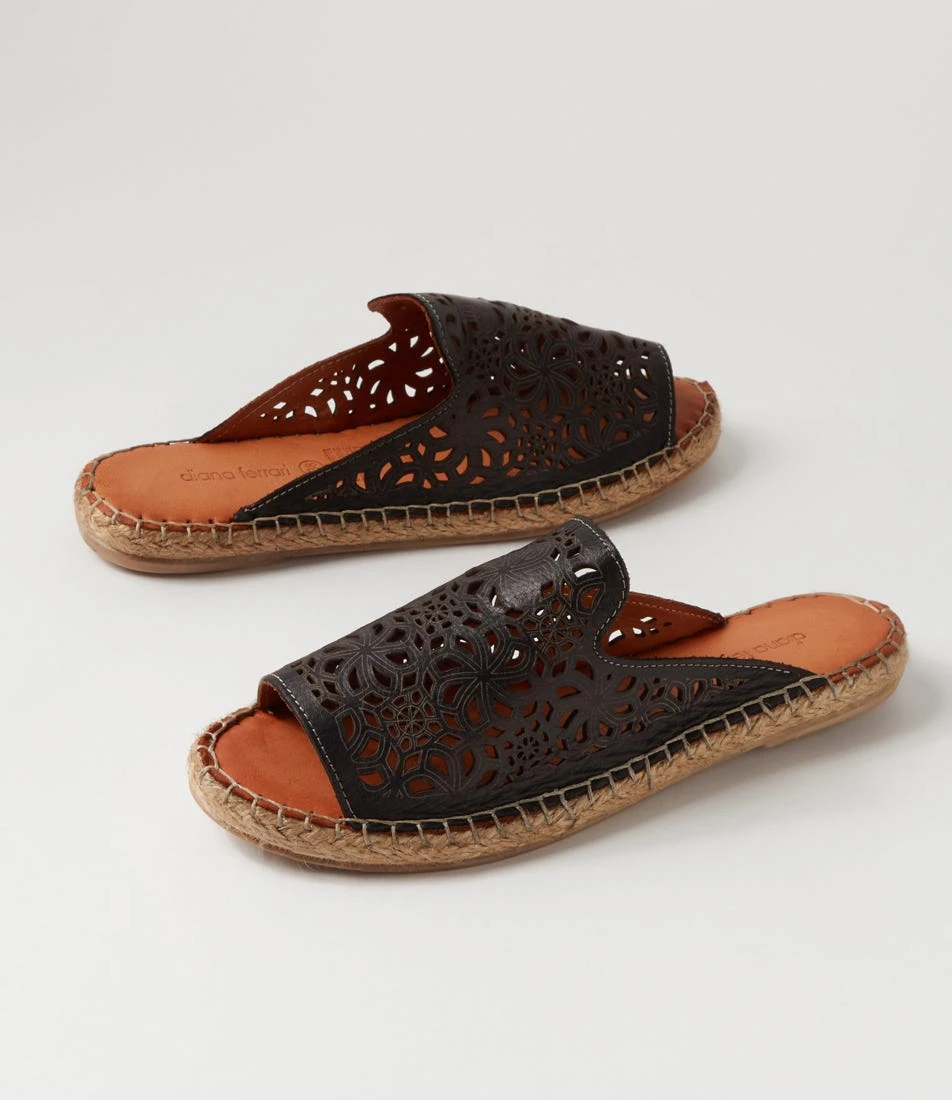 Elegant comfort awaits in these casual leather slides from Diana Ferrari. Resting on an espadrille sole, PIPS features an intricate pattern that is ideal for summer styling.
