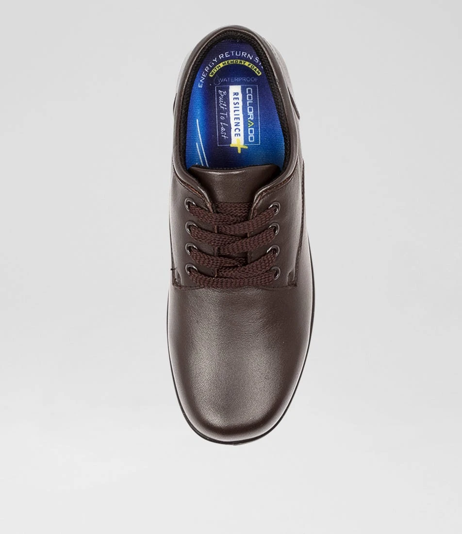 Built to last, the SOLAR SNR school shoes from Colorado’s Resilience range are made from premium leather and feature a range of innovations to guarantee long-lasting comfort and durability. The design process has been 5-point durability tested to warrant abrasion resistance and colour fastness, as well as an 8-point podiatry check to ensure optimum foot health. This state-of-the-art design is finished with grip-maximising outsoles tested to Australian Standards, antibacterial lining to protect against odours and contoured Memory Foam insoles for pressure-relieving comfort, as well as being waterproof.